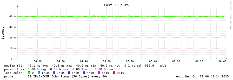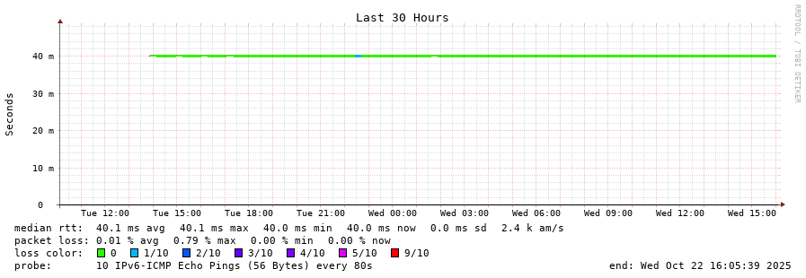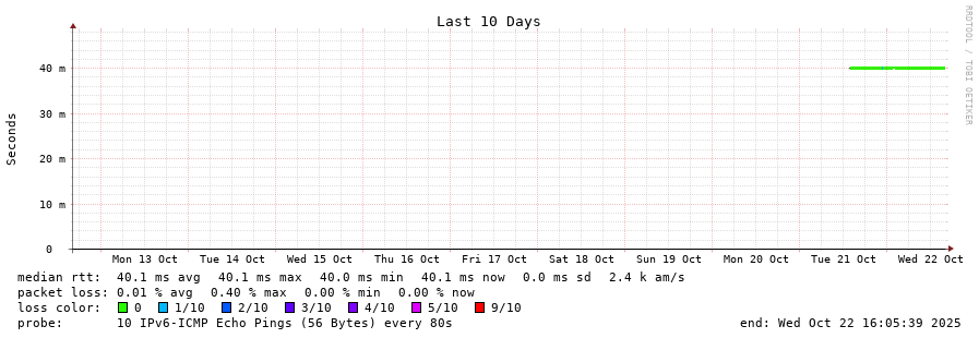 traceroute to 2a00:c30:bbbb:d::2 (2a00:c30:bbbb:d::2), 30 hops max, 80 byte packets - Generated at 2025-10-21 20:30:01
