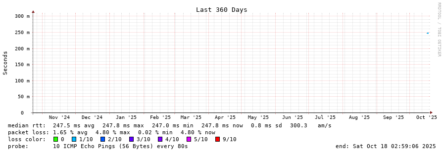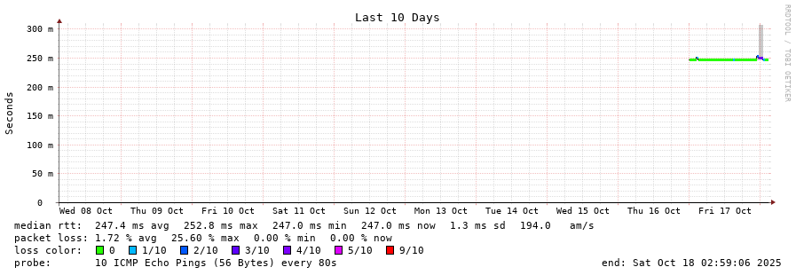 13 > 200.25.57.255 (200.25.57.255) [AS7195] 215.227ms 215.266ms 215.448ms