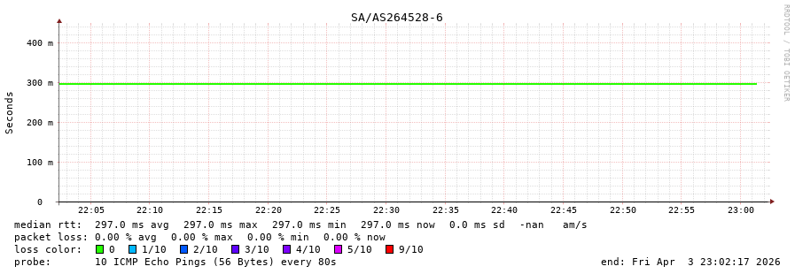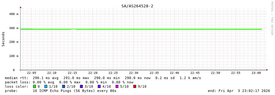 23. Median RTT 0.298 seconds