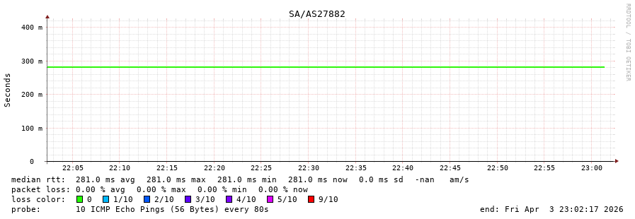 50. Median RTT 0.281 seconds